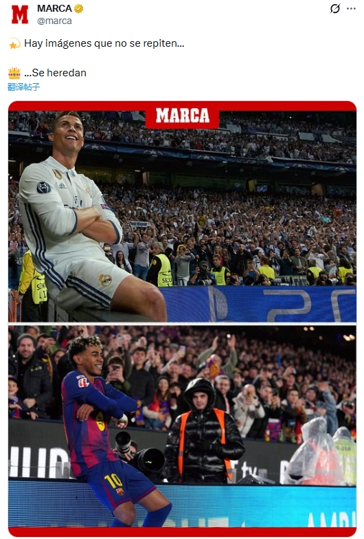 体育资讯-马卡晒亚马尔与C罗相似庆祝:有些画面独一无二,但会传承👑